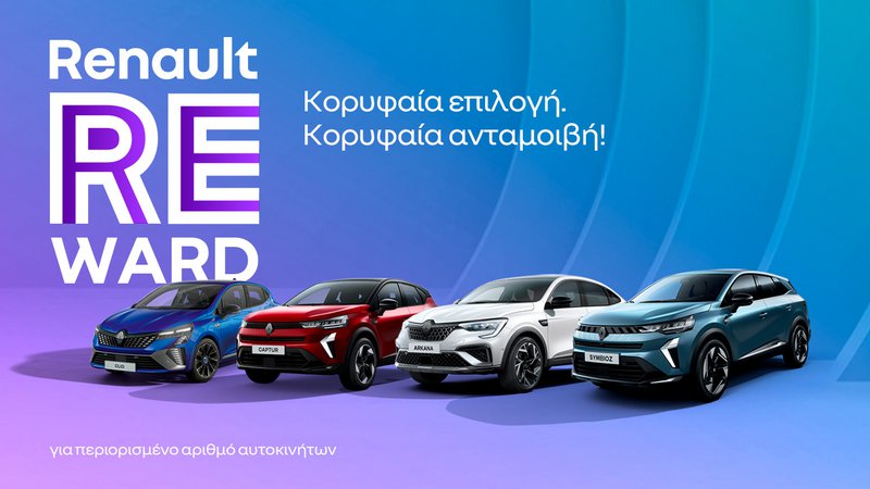 Με κεντρικό μήνυμα «Κορυφαία επιλογή, Κορυφαία ανταμοιβή», τα πιο δημοφιλή μοντέλα της Renault είναι τώρα πιο προσιτά από ποτέ. Πιο συγκεκριμένα, το best seller Renault Clio, το δημοφιλές B-SUV Renault Captur, το σπορτίφ κουπέ-SUV Renault Arkana και το hi-tech C-SUV νέο Renault Symbioz, προσφέρονται με όφελος που φτάνει τις €2.500, για αγορές μέχρι το τέλος του 2025.