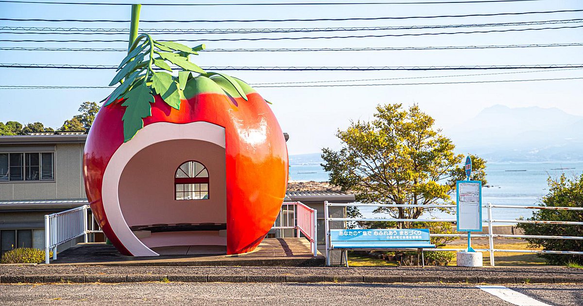 Το νησί Kyushu νότια της Ιαπωνίας ανήκει στην περιφέρεια Ναγκασάκι και αξίζει να το επισκεφτείς όχι μόνο για τους ναούς του, το ηφαιστειακό τοπίο και τα θερμά λουτρά του, αλλά και για τις 16 στάσεις λεωφορείου με τα υπέροχα χρώματα, που βρίσκονται κατά μήκος της εθνικής οδού 207. Κάθε ένα από τα σπιτάκια, που φτιάχτηκαν το 1990 με την ευκαιρία μιας τοπικής έκθεσης για τον τουρισμό, έχει το σχήμα ενός τεράστιου καρπουζιού, μιας ντομάτας, φράουλας, πεπονιού ή πορτοκαλιού. Μάλιστα, για τον σχεδιασμό τους χρησιμοποιήθηκε ως πρότυπο η άμαξα - κολοκύθα από την κλασική ταινία της Disney, ‘«Η Σταχτοπούτα».