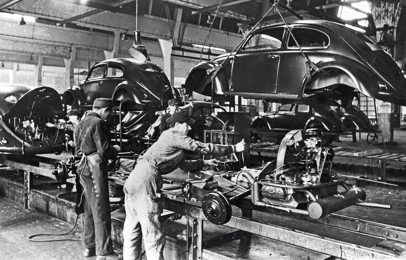 Η Βρετανική Στρατιωτική Κυβέρνηση είχε ήδη εκδώσει παραγγελία για 20.000 οχήματα τον Αύγουστο του 1945. Η έναρξη της παραγωγής ήταν ένα ορατό σημάδι μιας νέας αρχής και ελπίδας στο εργοστάσιο, το οποίο είχε καταστραφεί σε μεγάλο βαθμό μέχρι το τέλος του Β' Παγκοσμίου Πολέμου. Αυτή η λύση ήταν σύμφωνη με την μεταγενέστερη βρετανική πολιτική για τη Γερμανία, η οποία θεωρούσε την οικονομική ασφάλεια και τις μελλοντικές προοπτικές για τον πληθυσμό ως βασικά στοιχεία για την ανάπτυξη δημοκρατικών δομών. Τελικά, η δημοκρατία βρίσκει τον δρόμο της προς την Volkswagenwerk: στις 27 Νοεμβρίου 1945, το Εργατικό Συμβούλιο, που εκλέχθηκε με δημοκρατική ψηφοφορία, πραγματοποίησε την ιδρυτική του συνεδρίαση.