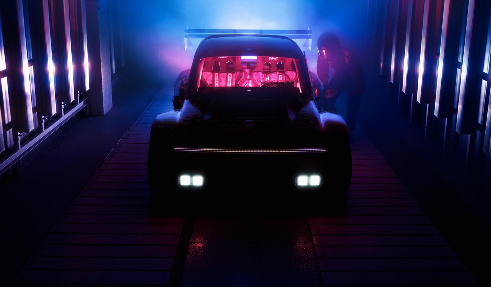 Στο εσωτερικό, διακρίνονται δύο καθίσματα μπάκετ, ενώ πίσω, πέραν της πτέρυγας, υπάρχει ένας μεγάλος διαχύτης και φώτα LED. Η όλη σχεδίαση, όσο μπορεί να φανεί, παραπέμπει σε κατασκευή που μοιάζει να «στοχεύει» τις πίστες.