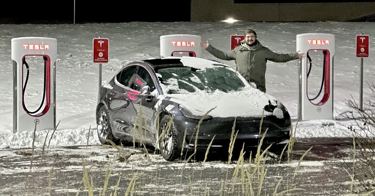 Θέλησε να διαπιστώσει πόσο επηρεάζεται η διαδικασία φόρτισης ενός ηλεκτρικού αυτοκινήτου σε τόσο χαμηλές θερμοκρασίες. Πήρε ένα Tesla Model 3, το άφησε για δύο συνεχόμενα βράδια εκτεθειμένο στον χιονιά και στη συνέχεια επέστρεψε και το έβαλε να φορτίσει σε έναν ταχυφορτιστή της Tesla.