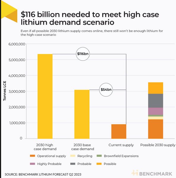 Με βάση τις προβλέψεις της και λαμβάνοντας υπόψιν τους στόχους παραγωγής EV των αυτοκινητοβιομηχανιών αλλά και τα δεδομένα του Διεθνούς Οργανισμού Ενέργειας για τις πολιτικές μεμονωμένων χωρών, το 2030 θα απαιτηθούν 5,3 εκατ. τόνοι ανθρακικού λιθίου. Ενδεικτικό είναι το γεγονός ότι αυτή τη στιγμή, με βάση τα στοιχεία της, η παραγωγή φτάνει στα επίπεδα των 915.000 τόνων!
