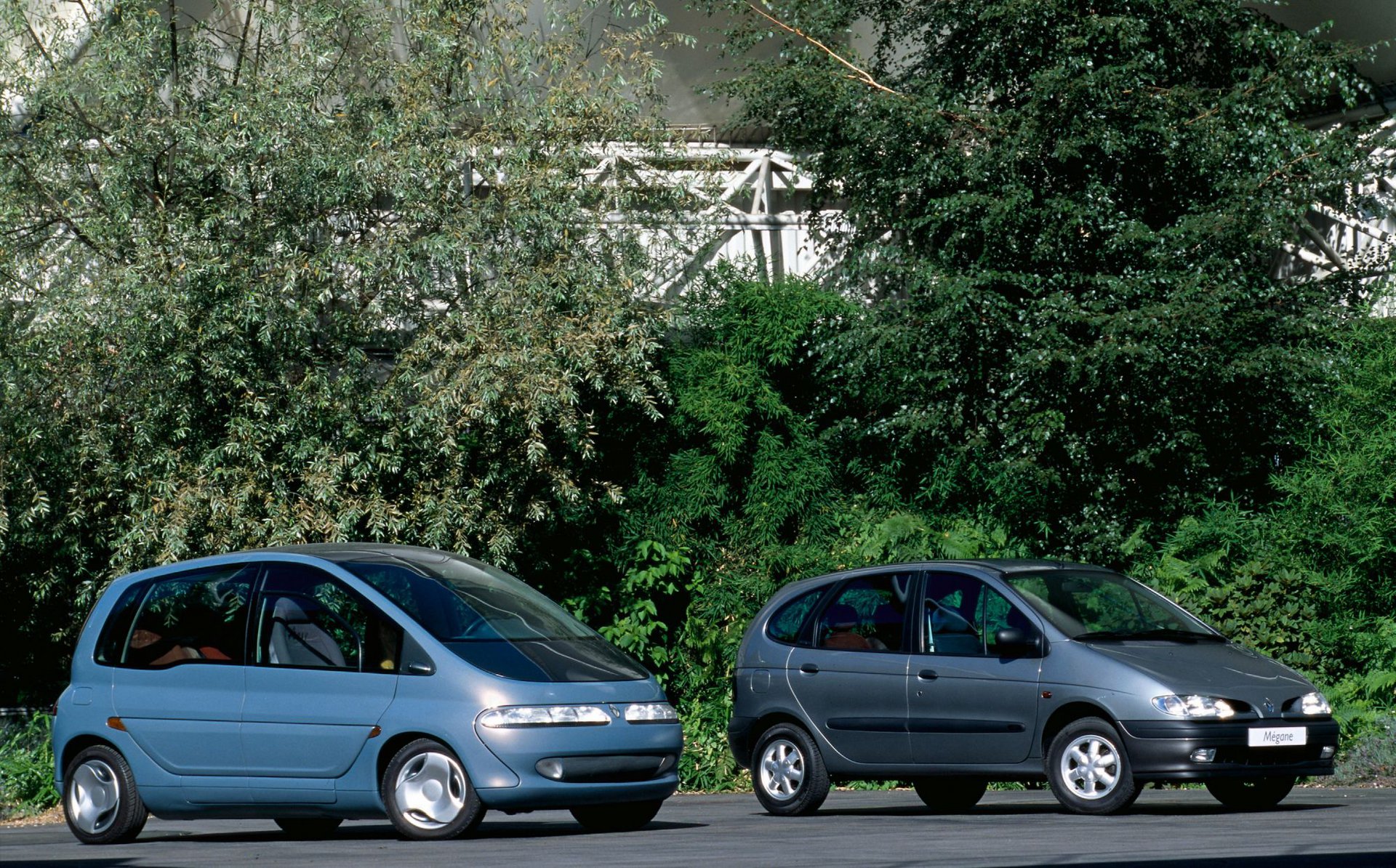 Το πρωτότυπο μοντέλο παρουσιάστηκε το 1991 στη Διεθνή Έκθεση Αυτοκινήτου της Φρανκφούρτης και η έκδοση παραγωγής έφτασε στις αντιπροσωπείες το 1996. Σχεδιάστηκε από μέσα προς τα έξω και το όνομα του τότε ήταν Megane Scénic. Επρόκειτο για ένα «κουκούλι» ιδανικό για ταξίδια, καινοτόμο, ασφαλές, άνετο και φιλικό, με εξαιρετική ευελιξία, γεμάτο κορυφαία τεχνολογία και παράθυρα «μεγαλύτερα από τη ζωή». Ο σχεδιασμός του ήταν μοναδικός και ευνοούσε τη δημιουργία αξέχαστων εμπειριών από το δρόμο.