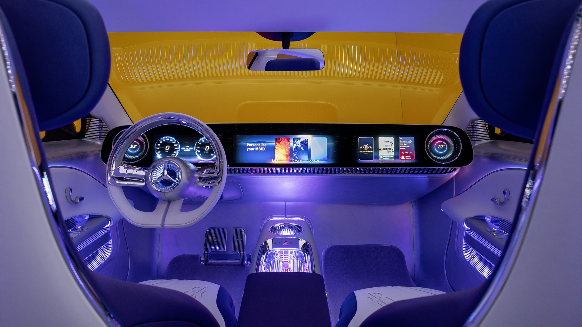 Το εσωτερικό μοιάζει αρκετά με αυτό της Vision EQXX, αφού μια οθόνη Superscreen καταλαμβάνει όλη την έκταση του ταμπλό, ενώ πολλές από τις επιφάνειες είναι κατασκευασμένες από βιώσιμα υλικά, όπως για παράδειγμα το ανακυκλωμένο χαρτί και το μπαμπού. Τα καθίσματα έχουν ντυθεί με δέρμα Nappa σε μπεζ και ασημί χρώμα, για το βάψιμο των οποίων χρησιμοποιήθηκαν μεγάλες ποσότητες από κατακάθι του καφέ. Οι ασημί-μωβ λεπτομέρειες που δεσπόζουν σε όλη την καμπίνα είναι φτιαγμένες από ανακυκλωμένο πλαστικό PET.
