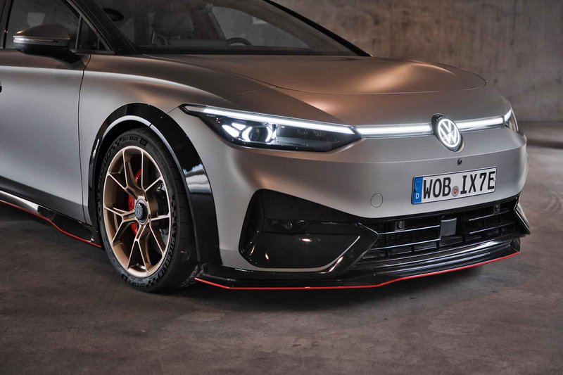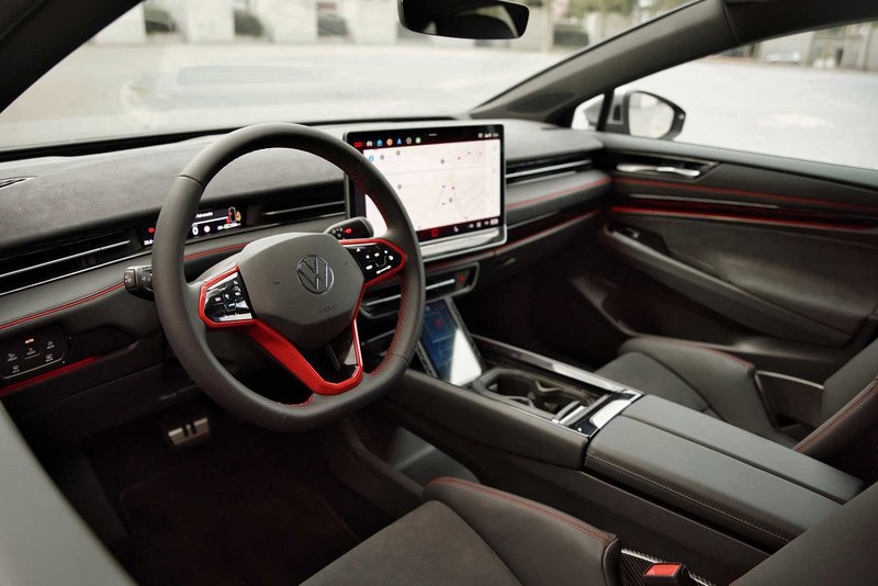 Ο σπορ χαρακτήρας φαίνεται και από τα μαύρα φρύδια των θόλων, την κόκκινη γραμμή που «διατρέχει» περιμετρικά όλο το κάτω μέρος, αλλά και τις σπορ ζάντες αλουμινίου 20 ιντσών. Επιπλέον, η απόσταση από το έδαφος μειώθηκε κατά 60 mm σε σχέση με το ID.7, με στόχο την ακόμα μεγαλύτερη ευστάθεια.