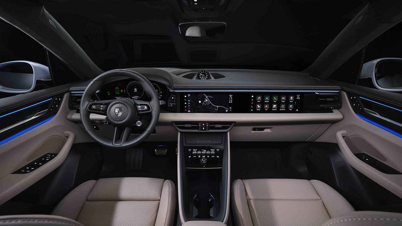 Στο εσωτερικό η ποιότητα κατασκευής είναι κορυφαία, όπως και τα επίπεδα πολυτέλειας, ενώ υπάρχουν τρεις οθόνες: Ο ψηφιακός πίνακας οργάνων 12,6 ιντσών, η οθόνη 10,9 ιντσών του νέου συστήματος infotainment και η προαιρετική, για τον συνοδηγό, επίσης 10,9 ιντσών. Επιπλέον, υπάρχει και προαιρετικό head-up display επαυξημένης πραγματικότητας. Οι δυνατότητες συνδεσιμότητας και διαμόρφωσης είναι απεριόριστες, σύμφωνα με την Porsche, η οποία χαρακτηρίζει τη νέα Macan ως ένα αυτοκίνητο «που αποδίδει σαν Porsche και συμπεριφέρεται σαν smartphone».
