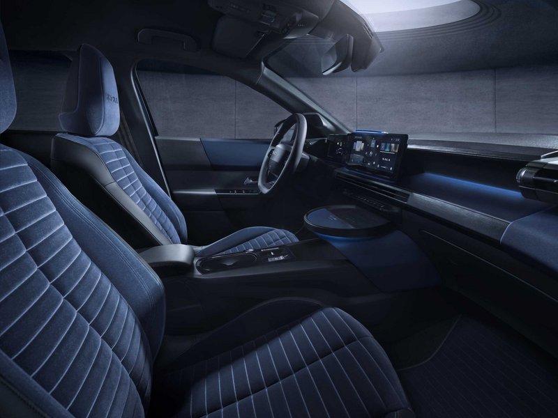 Το supermini υπόσχεται κομψότητα, φινέτσα, στιλ, άνεση, με θερμαινόμενα, ηλεκτρικά ρυθμιζόμενα καθίσματα που διαθέτουν λειτουργία μασάζ και επένδυση από 100% ανακυκλωμένο μπλε βελούδο, χρώμα που εμφανίζεται στις πινελιές των πάνελ των θυρών και στο ταμπλό.