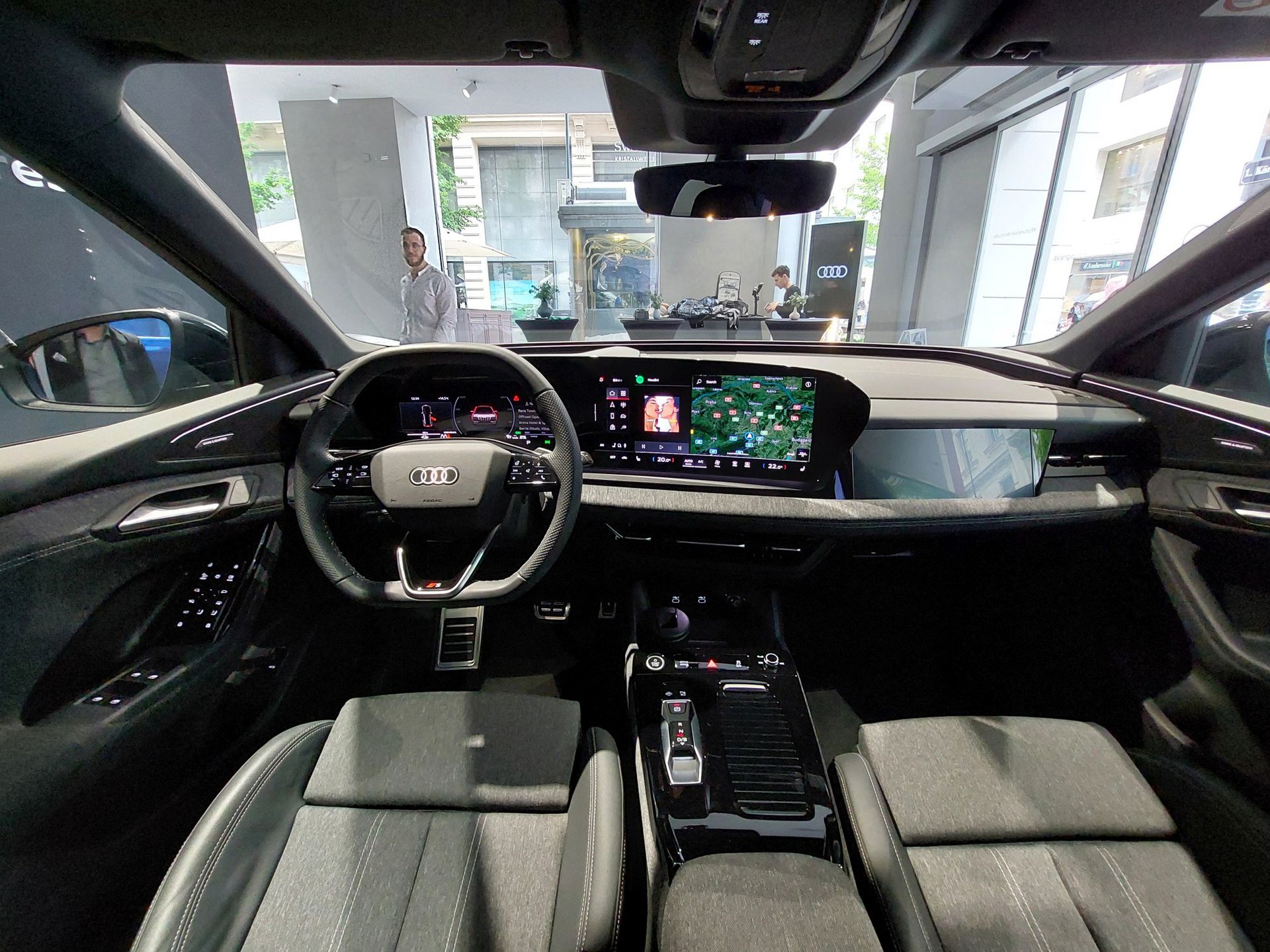 Εξίσου εντυπωσιακή είναι και η εικόνα στο εσωτερικό, με την Audi να έχει ανεβάσει τον πήχη της πολυτέλειας και της άνεσης. Εδώ τo στοιχείο που ξεχωρίζει είναι αδιαμφισβήτητα η μεγάλη, ανεξάρτητη πανοραμική οθόνη που περιλαμβάνει τον ψηφιακό πίνακα οργάνων των 11,9 ιντσών (Audi virtual cockpit) και την οθόνη αφής 14,5 ιντσών για το σύστημα infotainment. Οι οθόνες δεν τελειώνουν εδώ αφού υπάρχει ακόμα μία μπροστά από τον συνοδηγό (10,9 ιντσών) η οποία διαθέτει Privacy Mode για να μην αποσπά την προσοχή του οδηγού.