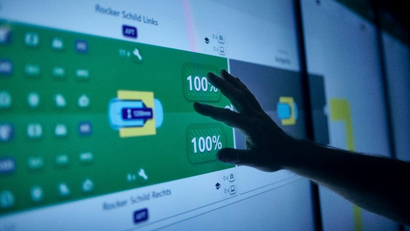 Το νέο κέντρο ελέγχου της μονάδας παρακολουθεί ολόκληρη τη διαδικασία συναρμολόγησης σε πραγματικό χρόνο - ακόμα και την ποσότητα των επιμέρους εξαρτημάτων και βιδών σε κάθε σταθμό εργασίας. Το «ψηφιακό δίδυμο» του εργοστασίου απεικονίζεται σε μια γιγαντιαία οθόνη αφής που περιέχει όλους τους σταθμούς εργασίας και παρέχει πληροφορίες που σχετίζονται με τα εργαλεία, την παράδοση υλικών, την ασφάλεια εργασίας και πολλά άλλα. Με μικρές οθόνες αφής οι εργαζόμενοι στη γραμμή παραγωγής παρέχουν περαιτέρω πληροφορίες σχετικά με την κατάσταση του χώρου εργασίας τους.