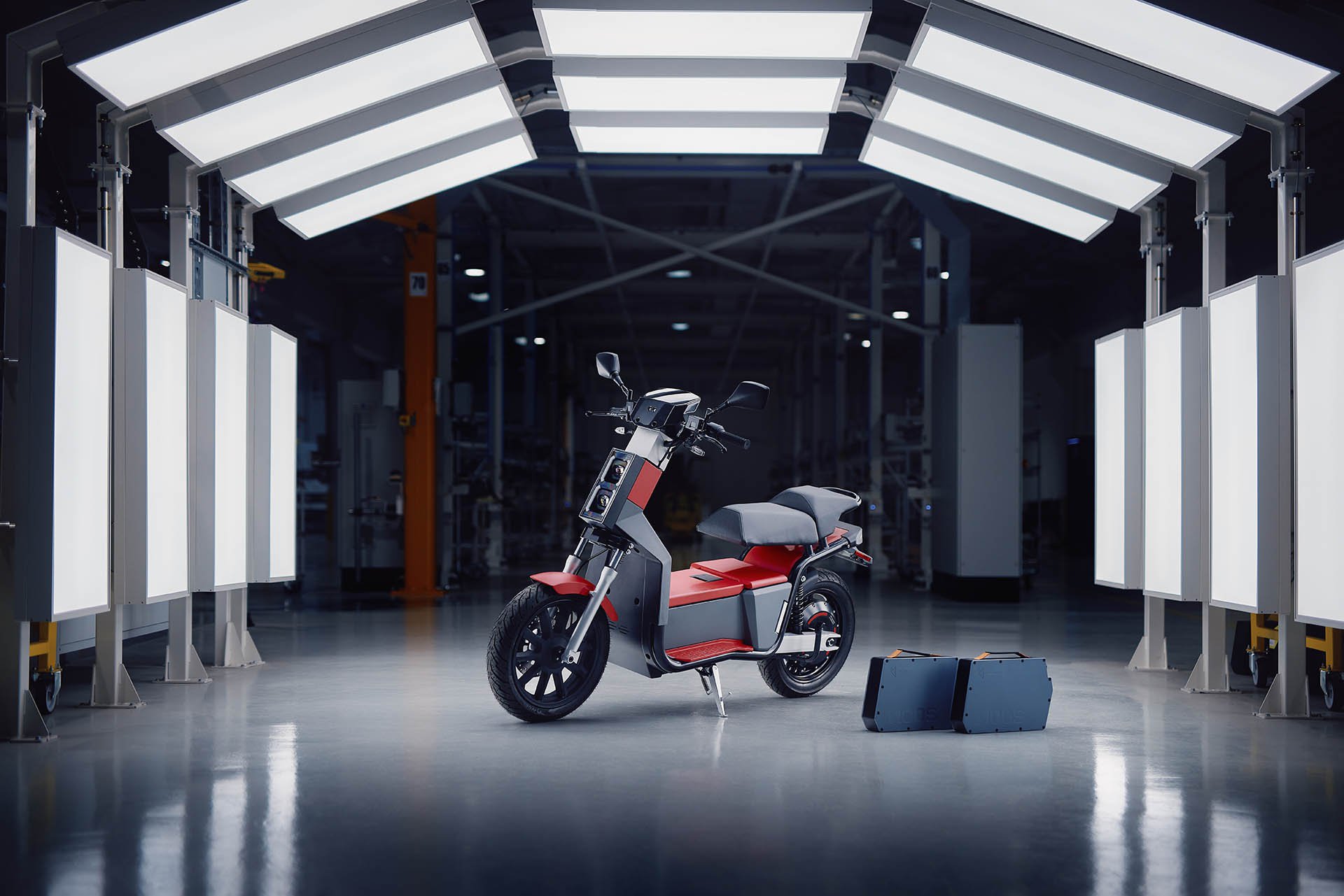 To NOOS είναι ένα αμιγώς ηλεκτρικό scooter κατηγορίας L3, την αντίστοιχη των 125 cc στα θερμικά, που σημαίνει ότι μπορεί να το οδηγήσει κανείς και με δίπλωμα αυτοκίνητου, υπό όρους. Η ισχύς στον τροχό είναι 5 kW/7 PS και η μέγιστη ταχύτητα που μπορεί να αναπτύξει είναι 80 km/h. Στο κάτω μέρος φιλοξενεί δύο αποσπώμενες μπαταρίες που έχουν σχεδιαστεί από την ECOSHIFT ενώ τα κελιά τους προέρχονται από την SAMSUNG. Κάθε μπαταρία έχει χωρητικότητα 2,2 kWh, ζυγίζει 12,5 kg και το σχήμα τους θυμίζει… τσαντάκι. Αυτό σημαίνει ότι ο οδηγός μπορεί να την αφαιρέσει και να τη μεταφέρει σπίτι του για να τη φορτίσει.
