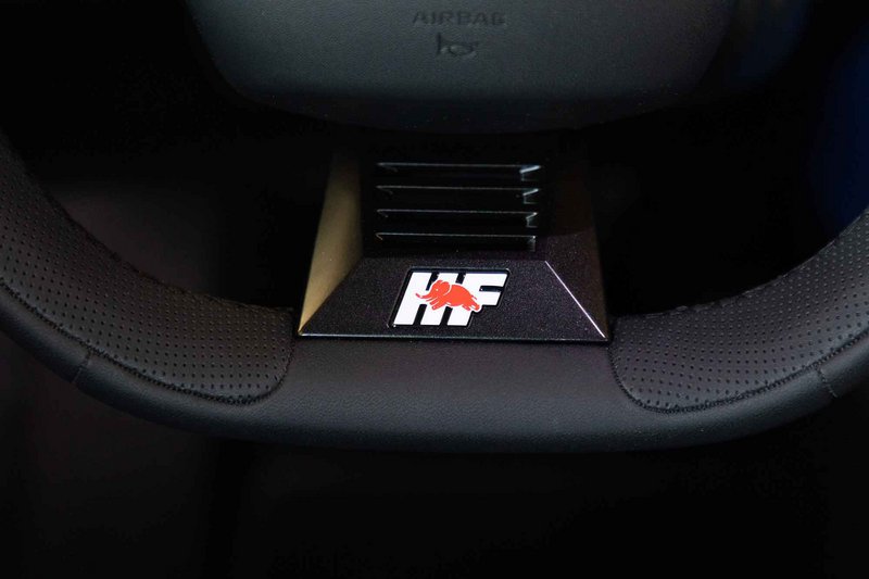 Και η θερμική HF διαθέτει ανάλογα ξεχωριστά χαρακτηριστικά με την ηλεκτρική, με το λογότυπο HF και τον εμβληματικό κόκκινο ελέφαντα, ζάντες αλουμινίου 17 ιντσών, ειδικά καθίσματα με πορτοκαλί ραφές για αντίθεση, σπορ τιμόνι με διάτρητο δέρμα, ειδική ταπετσαρία στις πόρτες, μπλε ηλεκτρίκ ταμπλό και τις δύο οθόνες 10,25 ιντσών.
