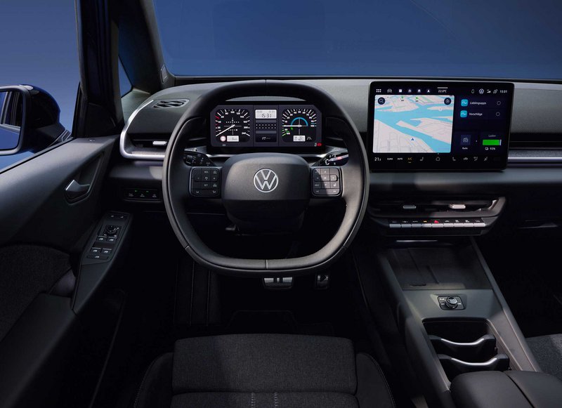 Εκεί όπου εντοπίζονται οι πιο ουσιαστικές αλλαγές είναι στην καμπίνα, όπου συναντάμε μια εντελώς διαφορετική εικόνα. Στο επίκεντρο παραμένουν οι δύο οθόνες: μία για τον πίνακα οργάνων 10,25 ιντσών και μία για το σύστημα infotainment Innovision 12,9 ιντσών. Στο ID.3 Neo, ωστόσο, πλαισιώνονται από ένα νέας σχεδίασης τιμόνι δύο ακτίνων, στο οποίο έχουν καταργηθεί οι απτικοί διακόπτες και έχουν αντικατασταθεί από φυσικά κουμπιά.