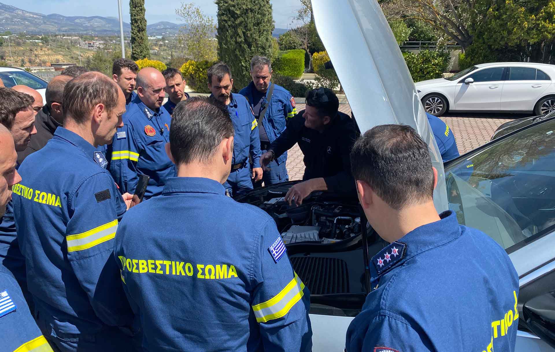 Η ασφάλεια όλων, όχι μόνο των επιβατών των οχημάτων της Mercedes-Benz, αποτελεί προτεραιότητα για τη μάρκα με το αστέρι. Η εκπαίδευση σε νέες τεχνολογίες και ειδικότερα σε ηλεκτρικά αυτοκίνητα αποτελεί σημαντικό παράγοντα προετοιμασίας για το Πυροσβεστικό μας Σώμα, που σπεύδει πάντοτε με αυταπάρνηση σε δύσκολες καταστάσεις. Έτσι, οι συντελεστές της εκπαίδευσης αυτής στη Star Automotive Ελλάς είναι ιδιαίτερα χαρούμενοι που συνέβαλλαν με τις δυνάμεις που διαθέτουν, ώστε το έργο των διασωστών να γίνει όσο το δυνατόν πιο ασφαλές και αποτελεσματικό.