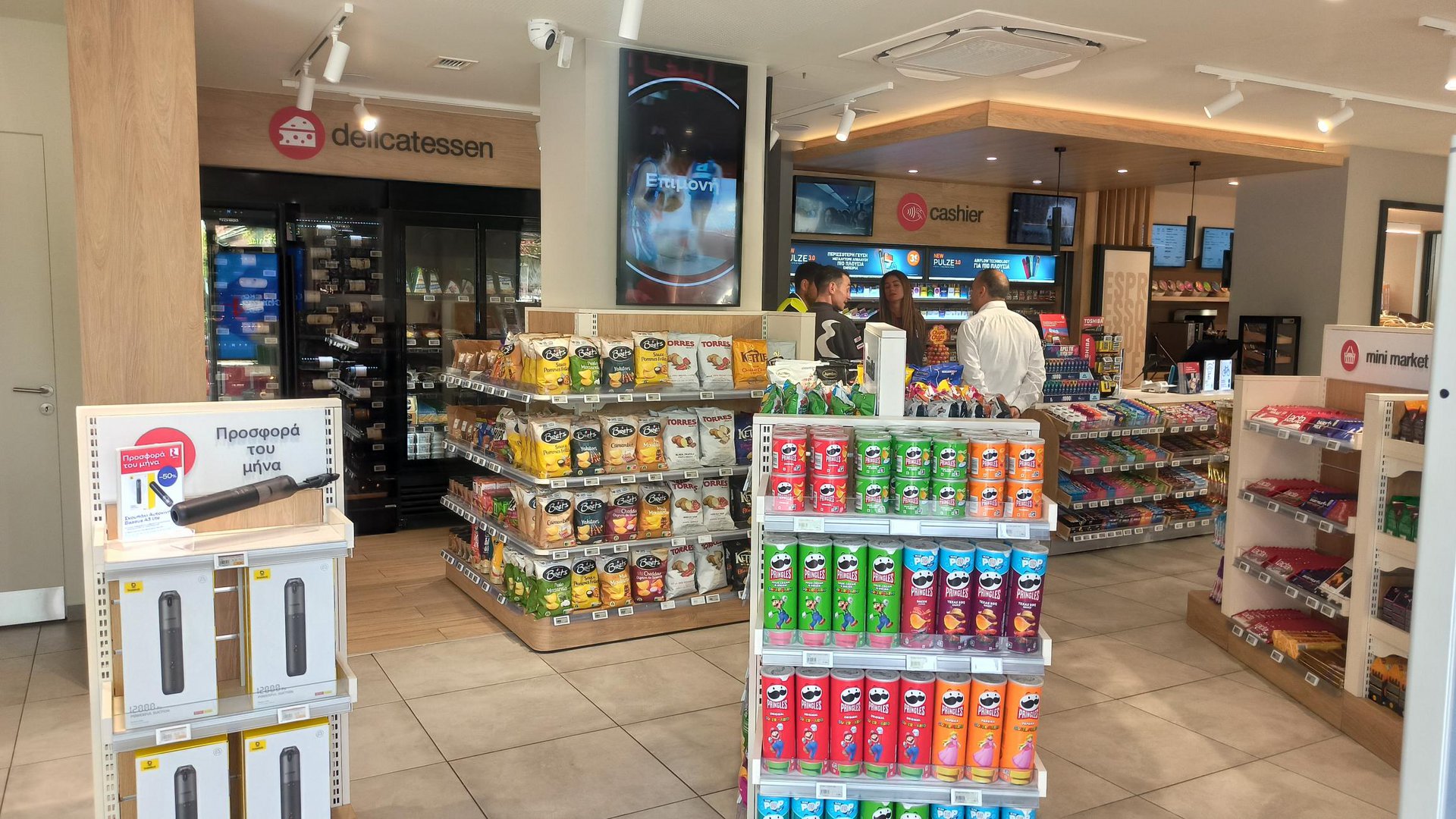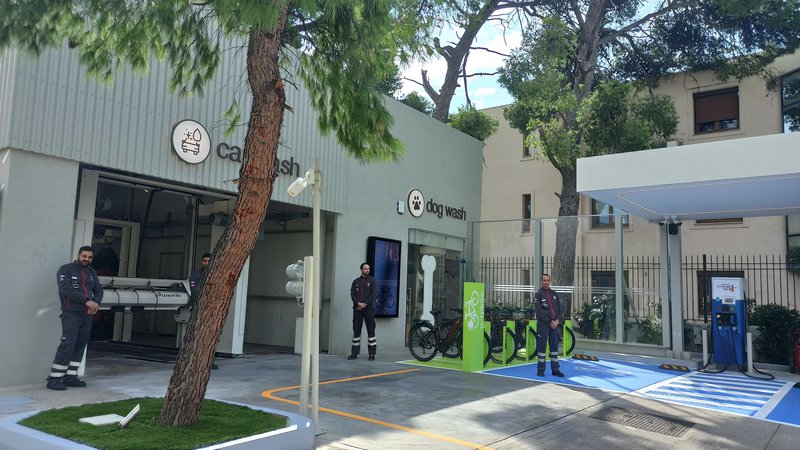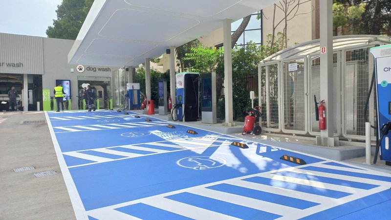 Παράλληλα, το συγκεκριμένο πρατήριο αποτελεί το μεγαλύτερο hub ηλεκτροφόρτισης στην Ελλάδα, διαθέτοντας δύο ταχυφορτιστές 360 kW και έναν 50 kW, ικανό να φορτίσει ένα Porsche Panamera σε μόλις 15 λεπτά, την ώρα που προσφέρεται δωρεάν χρήση ποδηλάτων για όσο διαρκεί η φόρτιση του αυτοκινήτου. Επίσης υπάρχει σταθμός πλήρωσης με LPG αλλά και CNG.