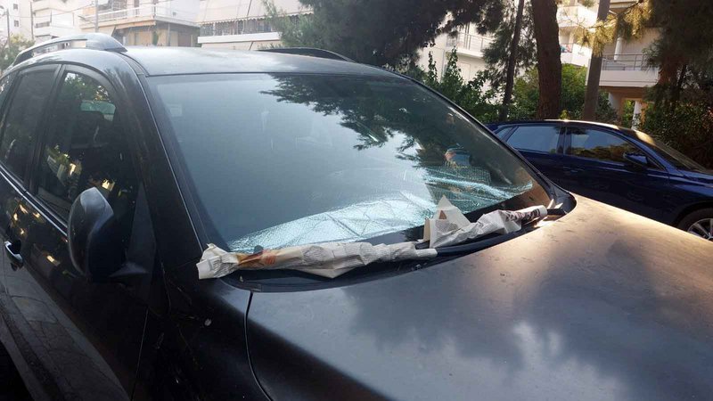 Ωστόσο, μία επιλογή μπορεί να αποτελεί και η εικόνα που συναντήσαμε σε μία βόλτα μας στα Νότια Προάστια. Συγκεκριμένα, στην περιοχή της Γλυφάδας, ο οδηγός ενός αυτοκινήτου επέλεξε να τυλίξει τους υαλοκαθαριστήρες με σελίδες από εφημερίδα. Βέβαια, δεν ξέρουμε πόσο αποτελεσματική μπορεί να αποδειχθεί η συγκεκριμένη πατέντα και αν το χαρτί έχει τη δυνατότητα να προστατεύσει τα λάστιχα από τις ακτίνες του ήλιου.