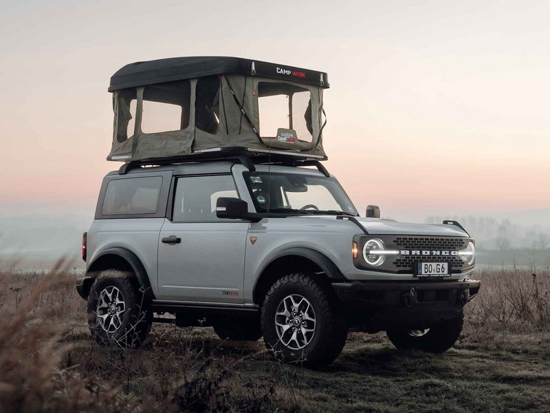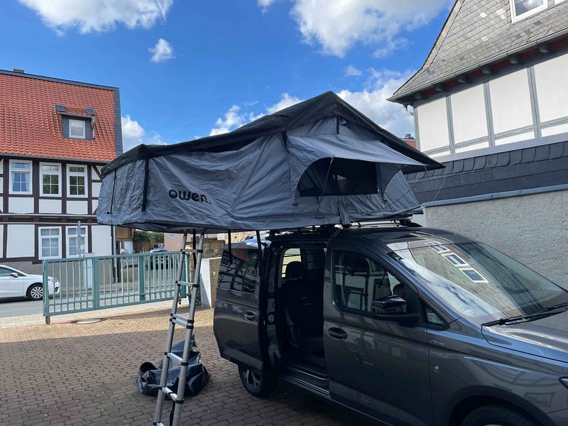 H φίρμα Owen από το Αμβούργο της Γερμανίας προσφέρει μια μεγάλη σκηνή οροφής με επιφάνεια στρώματος 2,40 Χ 1,40 μέτρα, η οποία ανοίγει και κλείνει σε λιγότερο από πέντε λεπτά. Η σκηνή απλώνεται εκτός των ορίων του αμαξώματος και έτσι μπορείς να καθίσεις από κάτω έχοντας προστασία από τον ήλιο ή τη βροχή. Επίσης εφοδιάζεται με σίτες για τα κουνούπια και τα άλλα έντομα, διαθέτει παπουτσοθήκες και άλλα αξεσουάρ ταξιδιού, ενώ η οροφή του οχήματος πρέπει να αντέχει σε βάρος τουλάχιστον 75 kg, για να μονταριστεί πάνω της η σκηνή Owen two+. Στα ευχάριστα νέα περιλαμβάνεται η τιμή, η οποία ξεκινάει από περίπου 1.650 ευρώ.