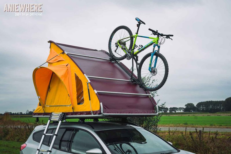 Η ολλανδική φίρμα Dare to be Different προσφέρει οκτώ διαφορετικές σκηνές οροφής, ανάμεσα στις οποίες ξεχωρίζει το μοντέλο Aniewhere με τη στιβαρή κατασκευή του και τη δυνατότητα τοποθέτησης πάνω σε αυτό ποδηλάτων, σανίδων του σέρφινγκ, κλπ. Το αρχικό μοντάρισμα στην οροφή διαρκεί περίπου 15 λεπτά και το άνοιγμα της σκηνής το πολύ πέντε λεπτά. Το πάχους έξι εκατοστών στρώμα έχει διαστάσεις 2,10 Χ 1,38 μέτρα και το βάρος της σκηνής μαζί με τον αλουμινένιο σκελετό αγγίζει τα 50 kg. Οι τιμές ξεκινούν στη συγκεκριμένη περίπτωση από περίπου 4.000 ευρώ.