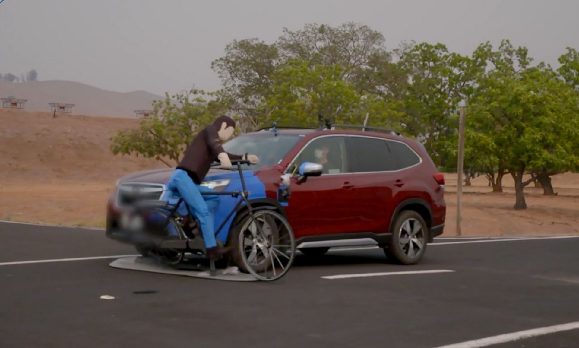 Για να πραγματοποιηθούν οι δοκιμές χρησιμοποιήθηκε ένα «φουσκωτό» αυτοκίνητο τύπου hatchback και ένα ποδήλατο όπου κινήθηκαν με διαφορετικούς τρόπους. Στις περισσότερες περιπτώσεις, όμως, τα συστήματα λειτούργησαν αναποτελεσματικά και δεν κατάφεραν να αποτρέψουν τη σύγκρουση.