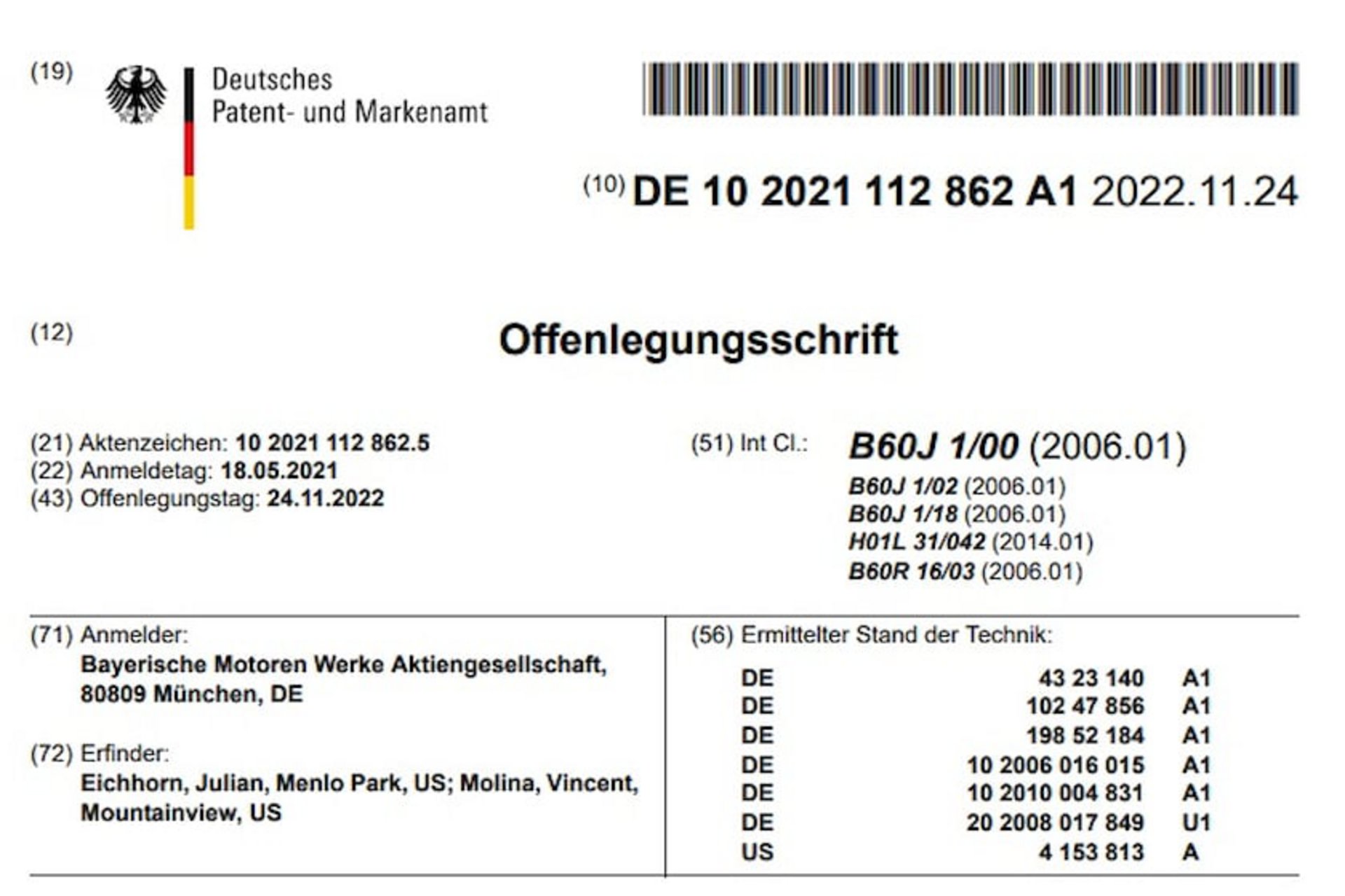 Η BMW κατέθεσε μία νέα πατέντα στη Γερμανική Υπηρεσία Πατεντών και Εμπορικού Σήματος (DPMA), προκειμένου να τοποθετήσει ηλιακά πάνελ στο αμάξωμα του οχήματος, την οροφή, τα παράθυρα και το παρμπρίζ. Τα συγκεκριμένα πάνελ θα είναι διάφανα, και πολύ λεπτά σε πάχος, για να μην αλλοιώνουν την ορατότητα και να ενισχύουν την απόδοση του οχήματος.