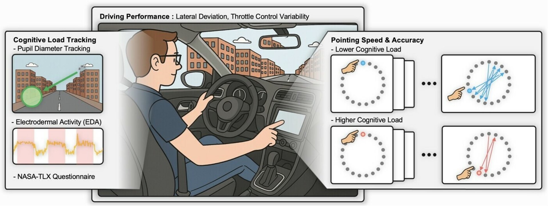 Η μελέτη, με τίτλο 'Touchscreens in Motion: Quantifying the Impact of Cognitive Load on Distracted Drivers', δημοσιεύτηκε τον Σεπτέμβριο και βασίστηκε σε πείραμα με 16 συμμετέχοντες σε προσομοιωτή οδήγησης υψηλής ακρίβειας. Οι ερευνητές κατέγραψαν τις κινήσεις των ματιών και των χεριών των οδηγών, τη διαστολή της κόρης και την αγωγιμότητα του δέρματος, ώστε να παρατηρήσουν τα επίπεδα της πνευματικής φόρτισης.