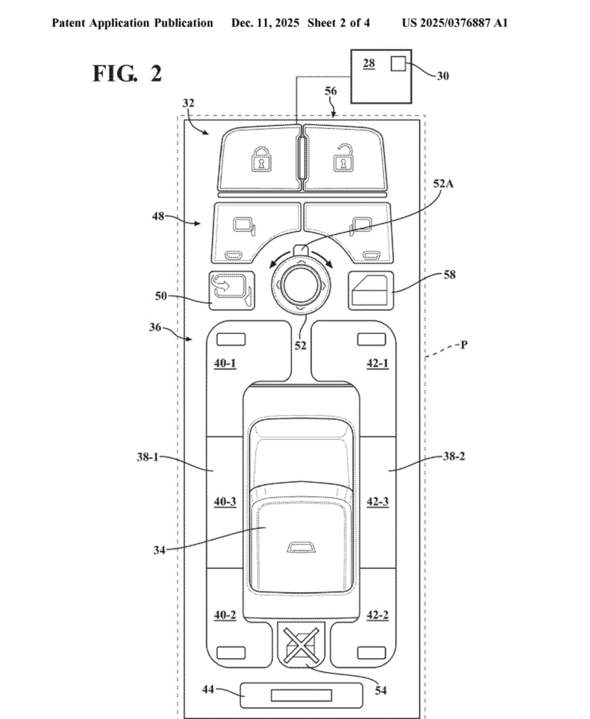 Σύμφωνα με τα έγγραφα που κατατέθηκαν με κωδικό US 2025/0376887 A1 στο Γραφείο Ευρεσιτεχνιών των ΗΠΑ στις 6 Ιουνίου και δημοσιεύθηκαν στις 11 Δεκεμβρίου, πρόκειται για έναν κεντρικό διακόπτη, τοποθετημένο μπροστά από το ηλεκτρικό χειρόφρενο (στο δεξί χέρι του οδηγού στα αριστεροτίμονα οχήματα), που αντικαθιστά το σύστημα με τον ξεχωριστό διακόπτη για κάθε παράθυρο. Ο συγκεκριμένος διακόπτης λειτουργεί σε συνδυασμό με ένα σύνολο δευτερευόντων διακοπτών για τον έλεγχο μεμονωμένων ή πολλαπλών παραθύρων ταυτόχρονα.