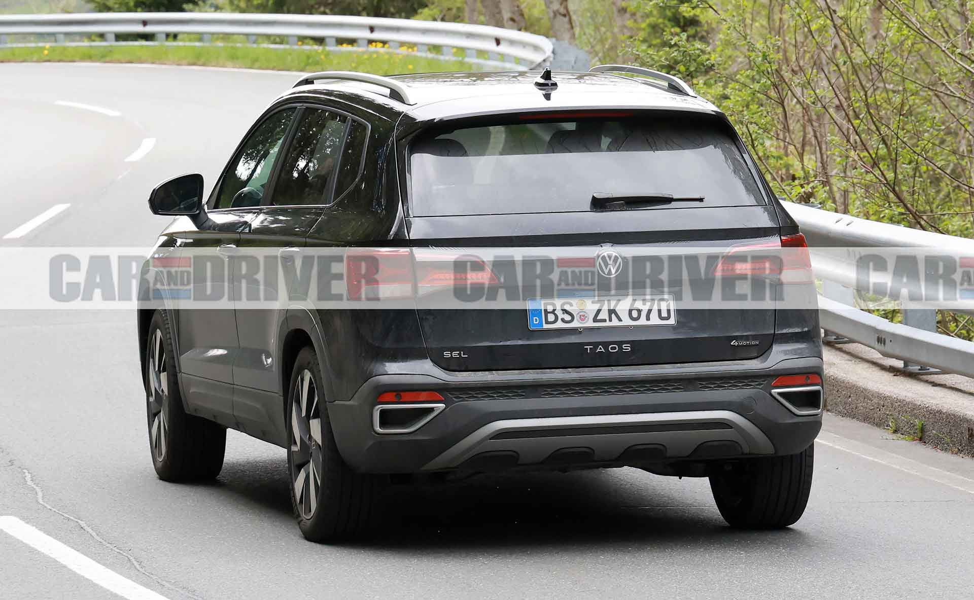 Ξεκινώντας από μπροστά, το νέο Taos θα έχει καινούρια φωτιστικά σώματα, διαφοροποιημένη μάσκα και επανασχεδιασμένο προφυλακτήρα. Η ακριβής τους σχεδίαση δεν είναι εύκολο να προσδιοριστεί καθώς τα αυτοκόλλητα συμβάλλουν ώστε όλα τα στοιχεία να μοιάζουν με αυτά του τρέχοντος μοντέλου.