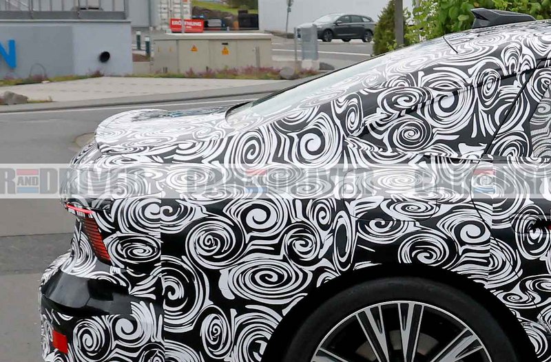 Στο πίσω μέρος, λοιπόν, διακρίνουμε μια μικρή αεροτομή στην άκρη του πορτμπαγκάζ, διπλή απόληξη εξάτμισης αλλά και διάταξη φωτιστικών σωμάτων παραπλήσια με αυτή του νέου A7 Avant. Στο πλάι οι χειρολαβές των θυρών φαίνεται ότι έχουν μινιμαλιστική σχεδίαση, ενώ πηγαίνοντας μπροστά, είναι εμφανής η μεγάλη, διχτυωτή, μάσκα με τις κάθετες εισαγωγές αέρα και τα «αιχμηρά» φωτιστικά σώματα.