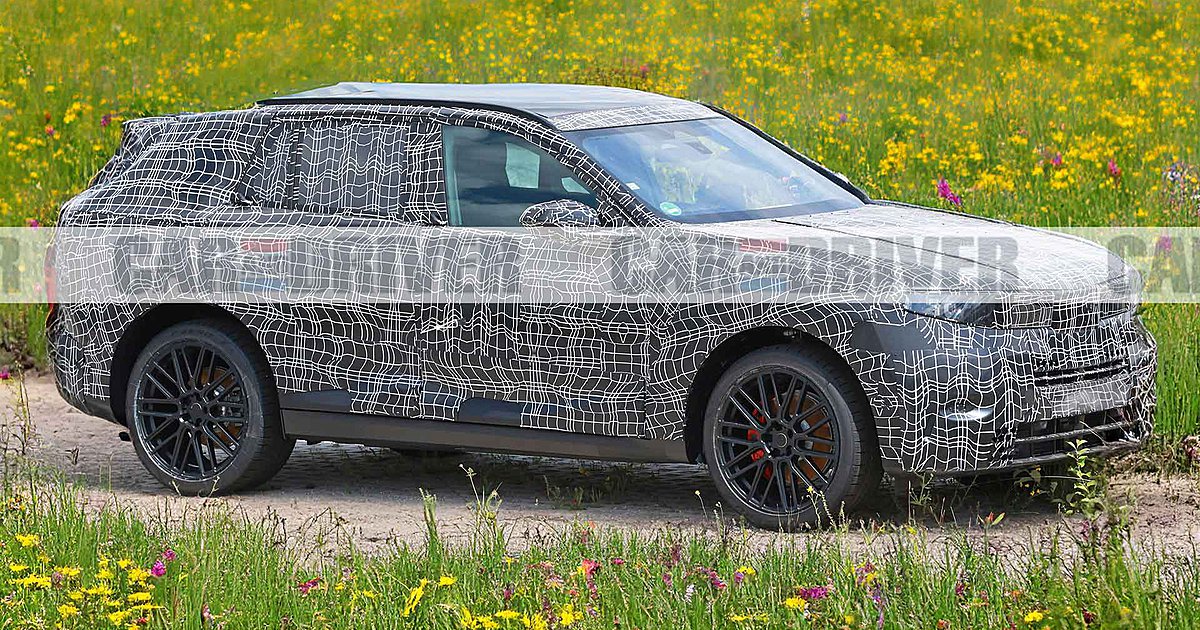 Το καμουφλάζ είναι έντονο και η συνολική εμφάνιση παραπέμπει αρκετά στη νέα iX3 που σάς έχουμε ήδη παρουσιάσει να δοκιμάζεται, αλλά σαφώς με αυξημένες διαστάσεις. Στο εμπρός μέρος μπορούμε να διακρίνουμε, έστω και με δυσκολία, τη σχεδιαστική φιλοσοφία της Vision Neue Klasse X, με τη μικρότερη μάσκα, τον κοντό πρόβολο και τα πιο «αιχμηρά» φωτιστικά σώματα.