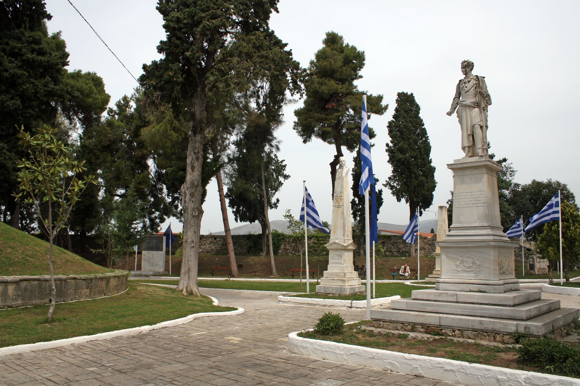 Εδώ, στο περιποιημένο πλακόστρωτο του γεμάτου αγάλματα χώρου, που λειτουργεί αναμφίβολα και ως χώρος αναψυχής, έχεις την ευκαιρία για ένα μικρό μάθημα ιστορίας, αντικρίζοντας τα ονόματα περισσότερο ή λιγότερο γνωστών πρωταγωνιστών της Επανάστασης – όπως αυτό του Αθανάσιου Ραζηκώτσικα, που βρέθηκε στα μόλις 28 του χρόνια να πέφτει ηρωικά στην έξοδο ως εκλεγμένος επικεφαλής της φρουράς του Μεσολογγίου.