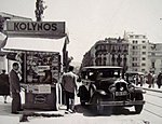 Ταξί στη συμβολή των οδών Αγίας Σοφίας και Μητροπόλεως στη Θεσσαλονίκη. Δεκαετία 1930.