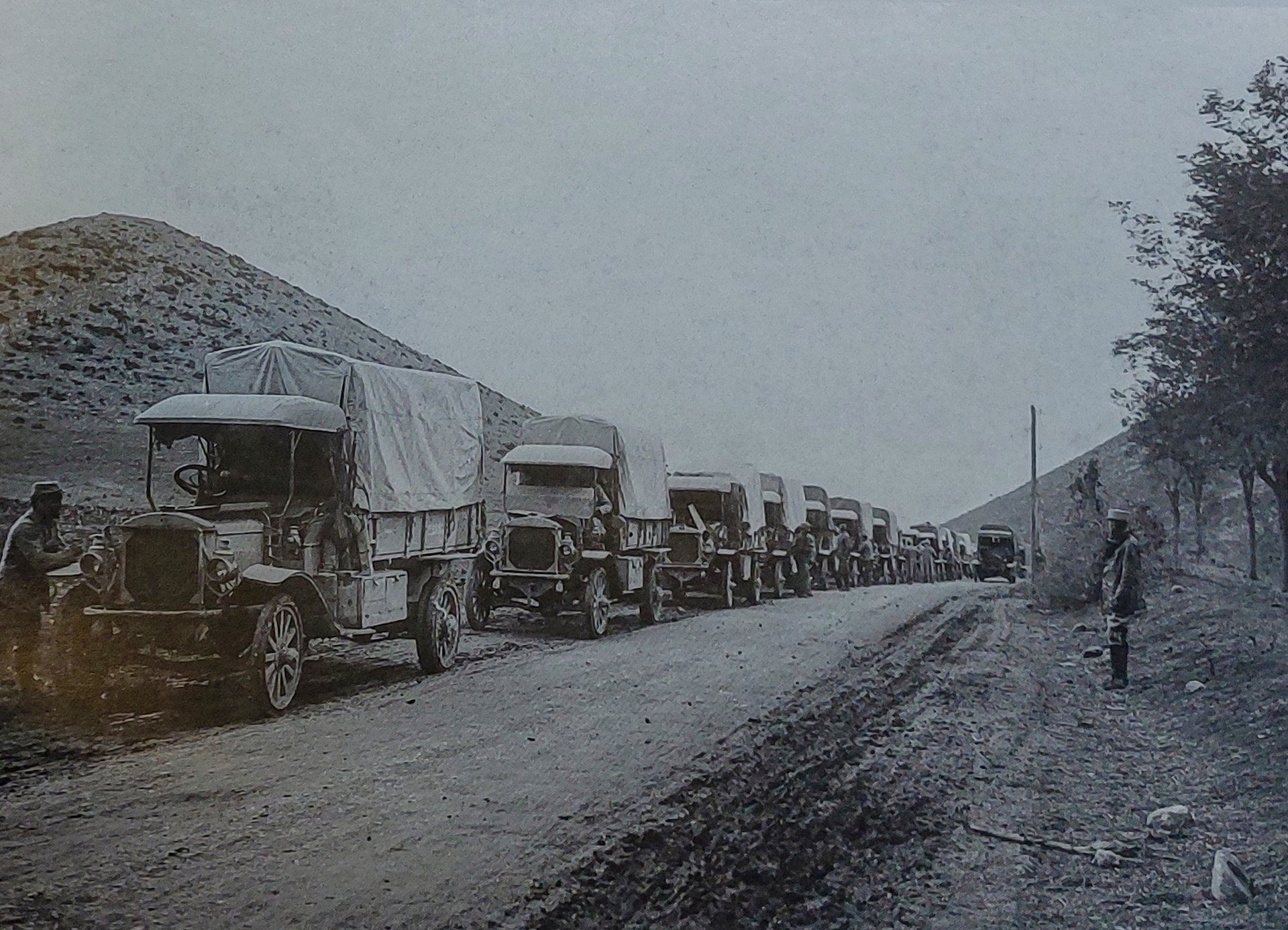 Υπάρχουν, ακόμα, βυτία, φορτηγά και επιβατικά αυτοκίνητα, Sunbeam, Vauxhall και Ford, «γνωστά ως 'Τενεκεδένιες Λίζυ'». Τα τελευταία, ωστόσο, πάρα την αξιοπιστία τους, δεν συνιστούν το πλέον κατάλληλο υλικό για κατά φάλαγγα πορεία, εξαιτίας των σχέσεων υποποπλασιασμού στα κιβώτια ταχυτήτων – η μία σχέση εξασφαλίζει ταχύτητα κίνησης 40 και η άλλη 4 μίλια την ώρα. Περιττό να επιμείνουμε στις συνθήκες εργασίας των οδηγών – εργάζονται 12 έως 14 ώρες ημερησίως.