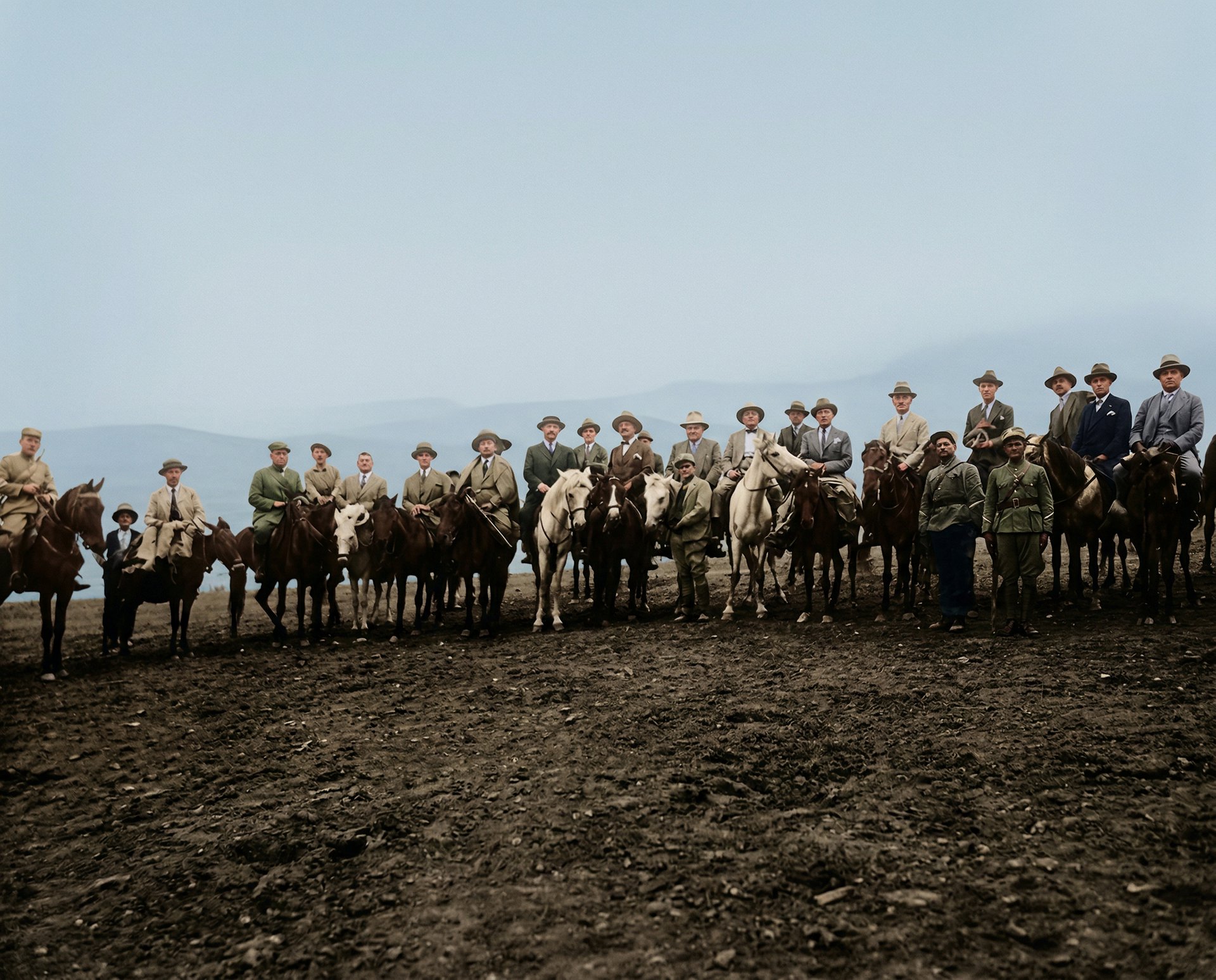 Ο Δ. Δίγκας ύστερα από επιθεώρηση δημοσίων έργων, μαζί με συνεργάτες και πολιτικούς του φίλους. Σπάνια φωτογραφίαπου παραπέμπει σε σκηνή από ταινία ουέστερν.